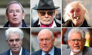 Clockwise from top left: Fred Talbot, Gary Glitter, Jimmy Savile, Rolf Harris, Stuart Hall, Max Clifford Photograph: Various/PA/Getty/Wireimage/AFP/Reuters Sandra Laville