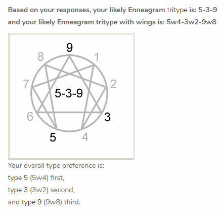 Judging by my posts so far on this forum, could this be my possible tritype? I had thought for sure that I may be a 9 first type instead. Is there a way for me to confirm what tritype I am on this forum through certain questionnaires and what not?
